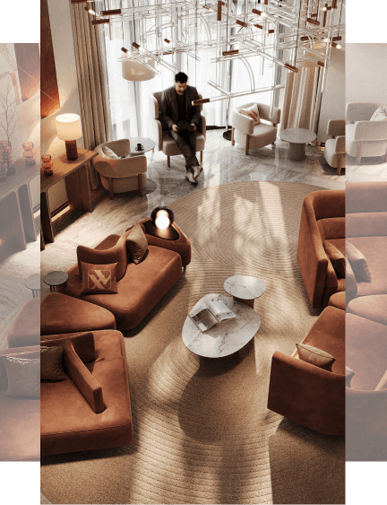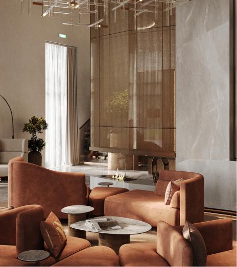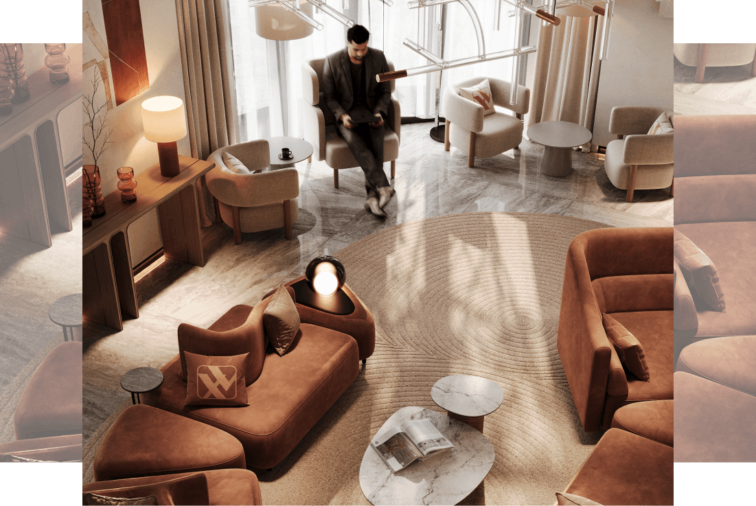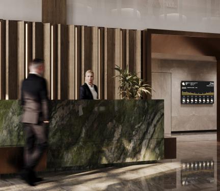 отдыха, зона ожидания и стойка ресепшн с консьержем.