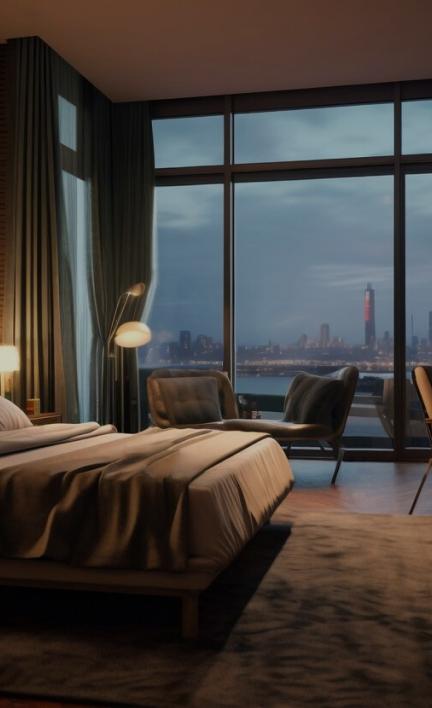 Строгие фасады, панорамные окна в пол, высокие потолки, скрытые ниши для кондиционеров. Все призвано создать эстетику снаружи и несравненный комфорт внутри